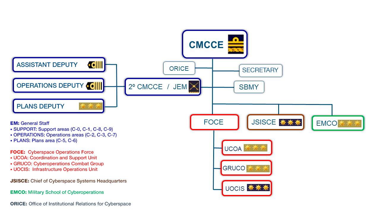 Moreover, the MCCE will oversee advanced military training in cyber operations across the Armed Forces, conducted through the Military School of Cyber Operations (EMCO in Spanish).